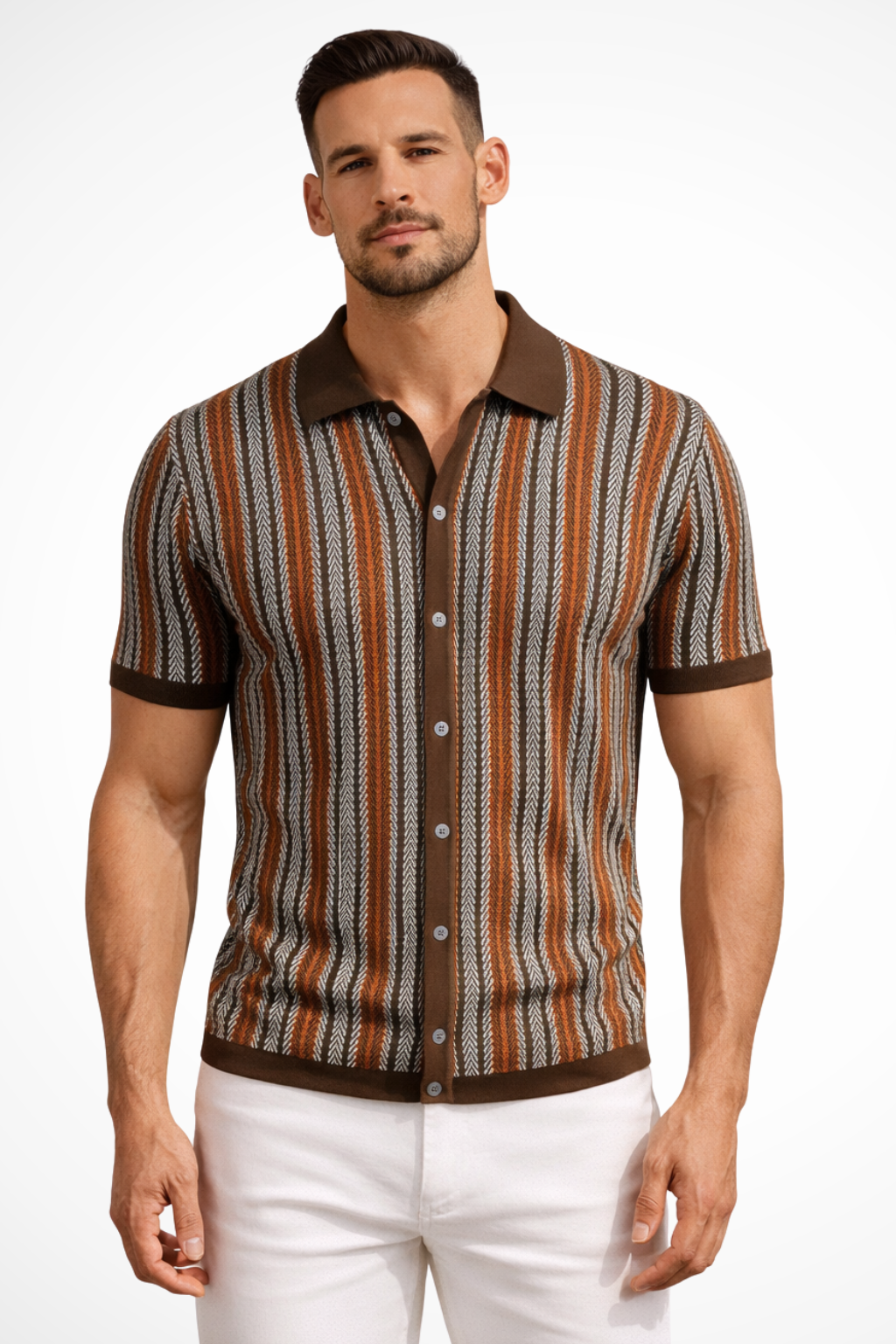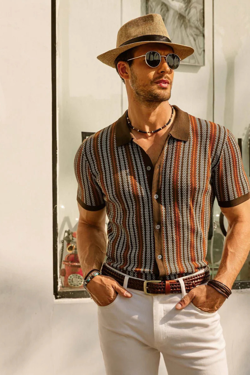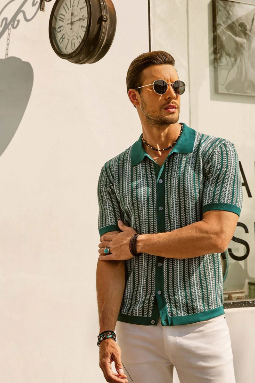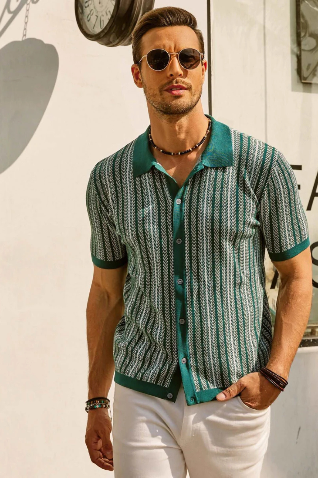 Eamon | Men Striped Button Down Polo Shirt with Short Sleeves