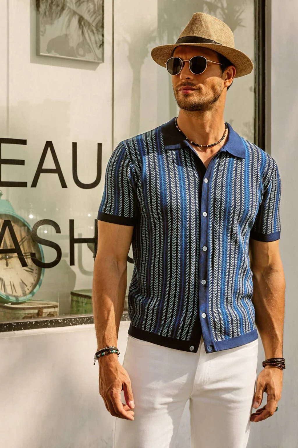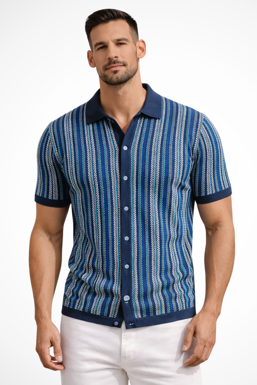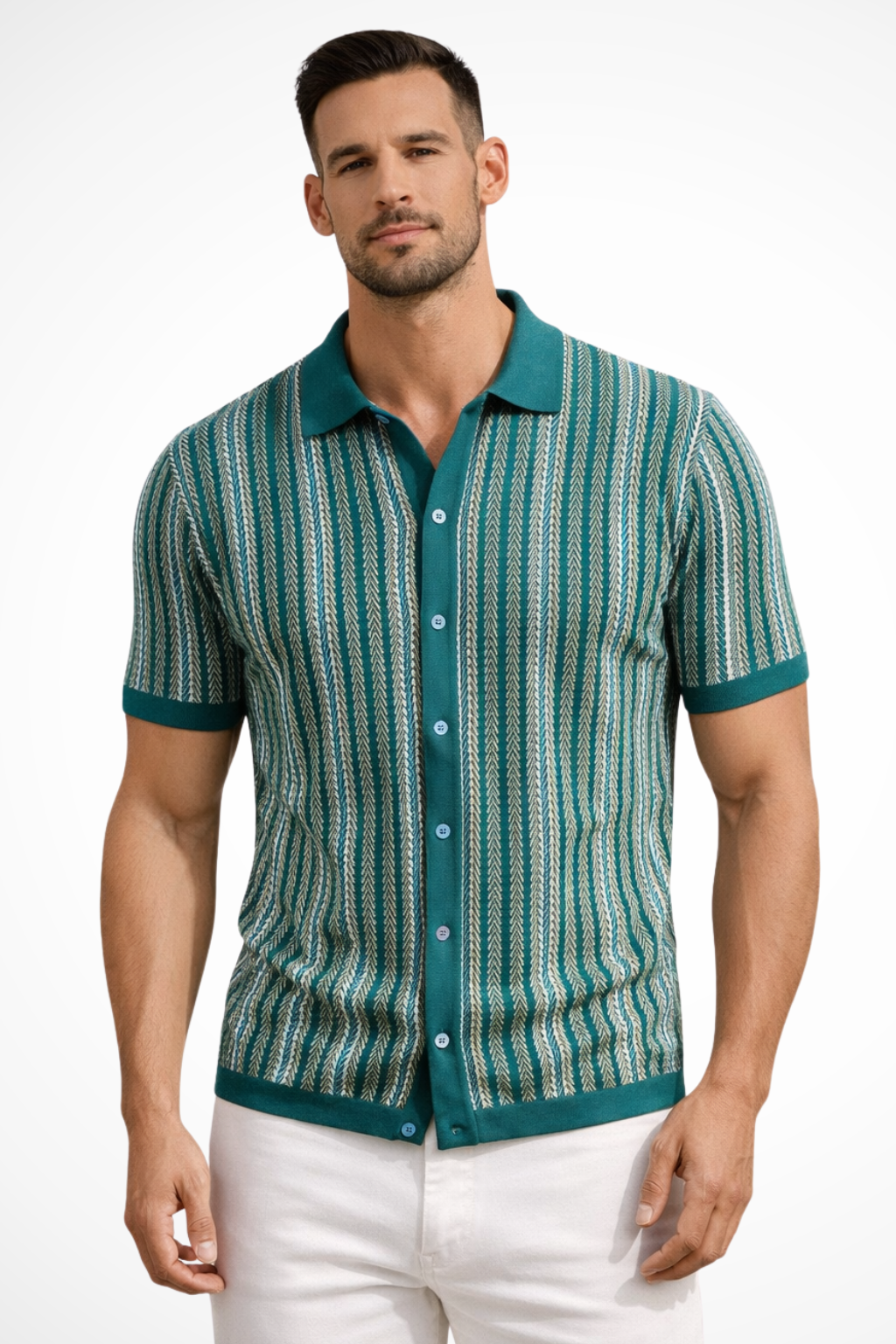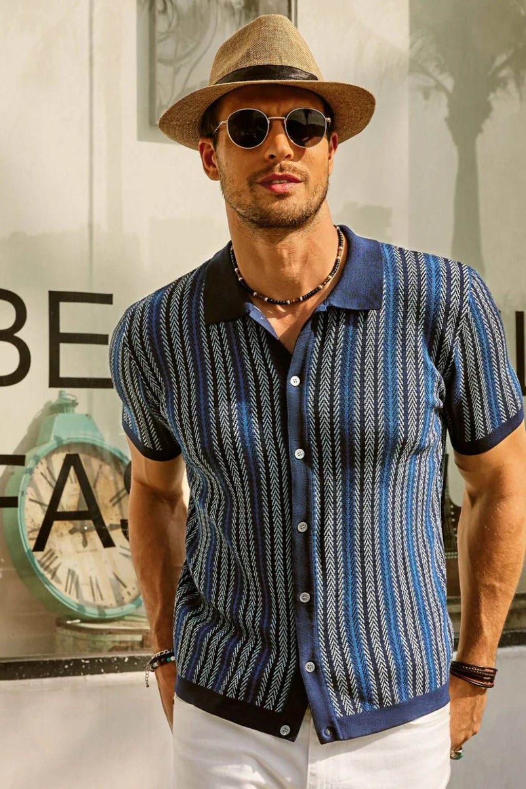 Eamon | Men Striped Button Down Polo Shirt with Short Sleeves