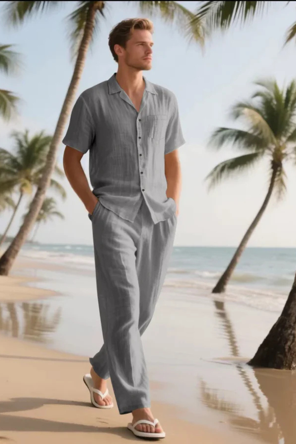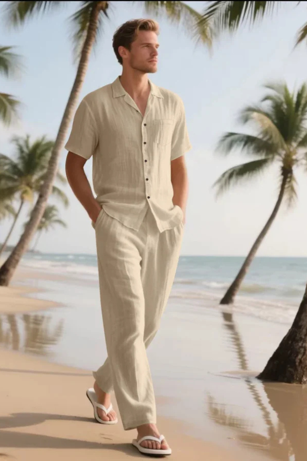 Men Cotton Linen Two-Piece Beach Set