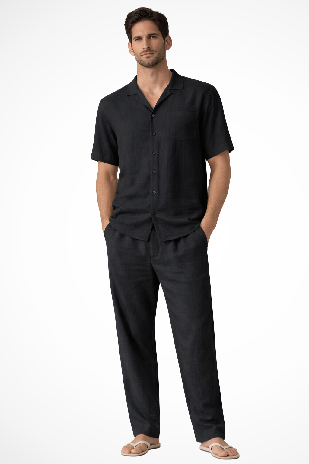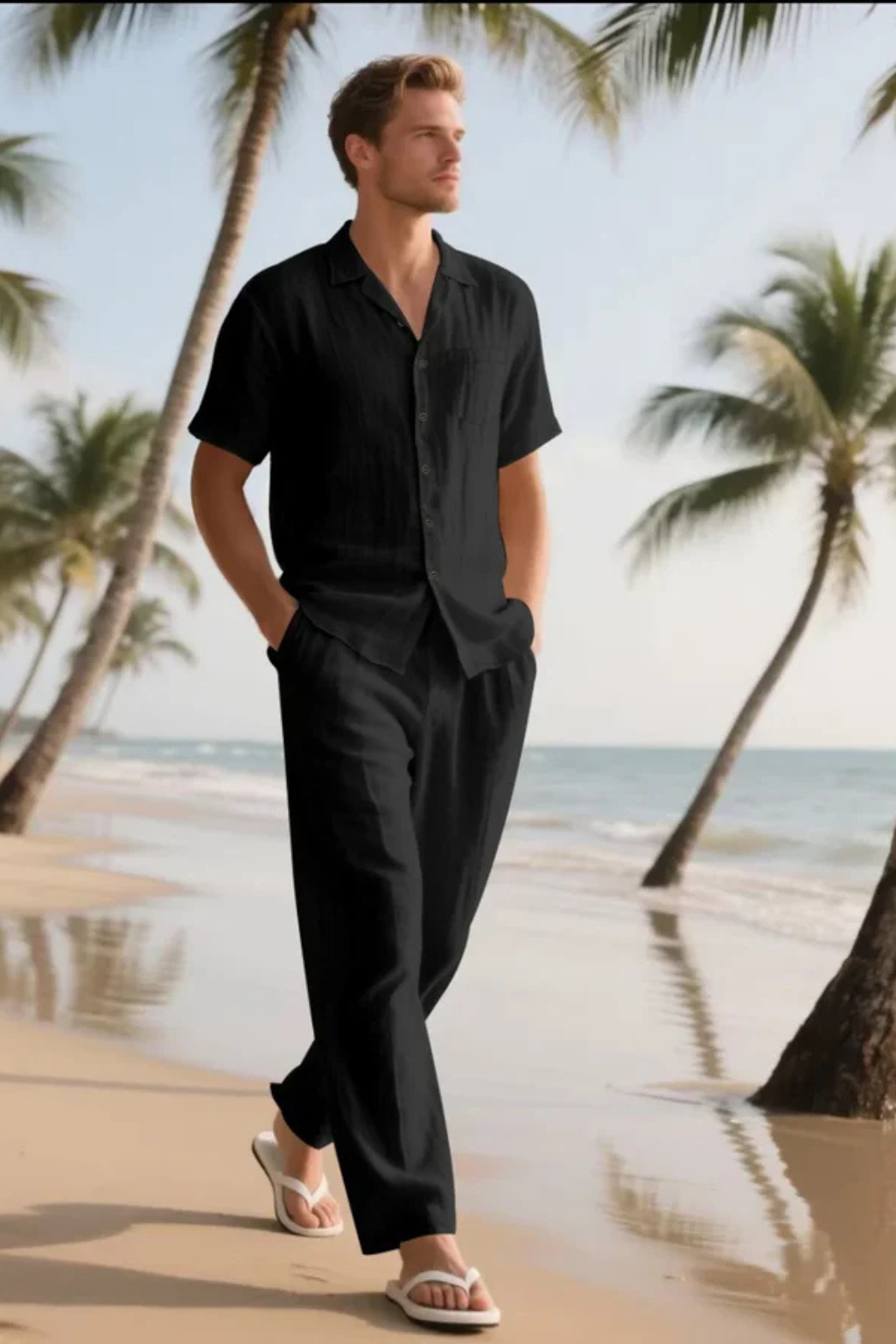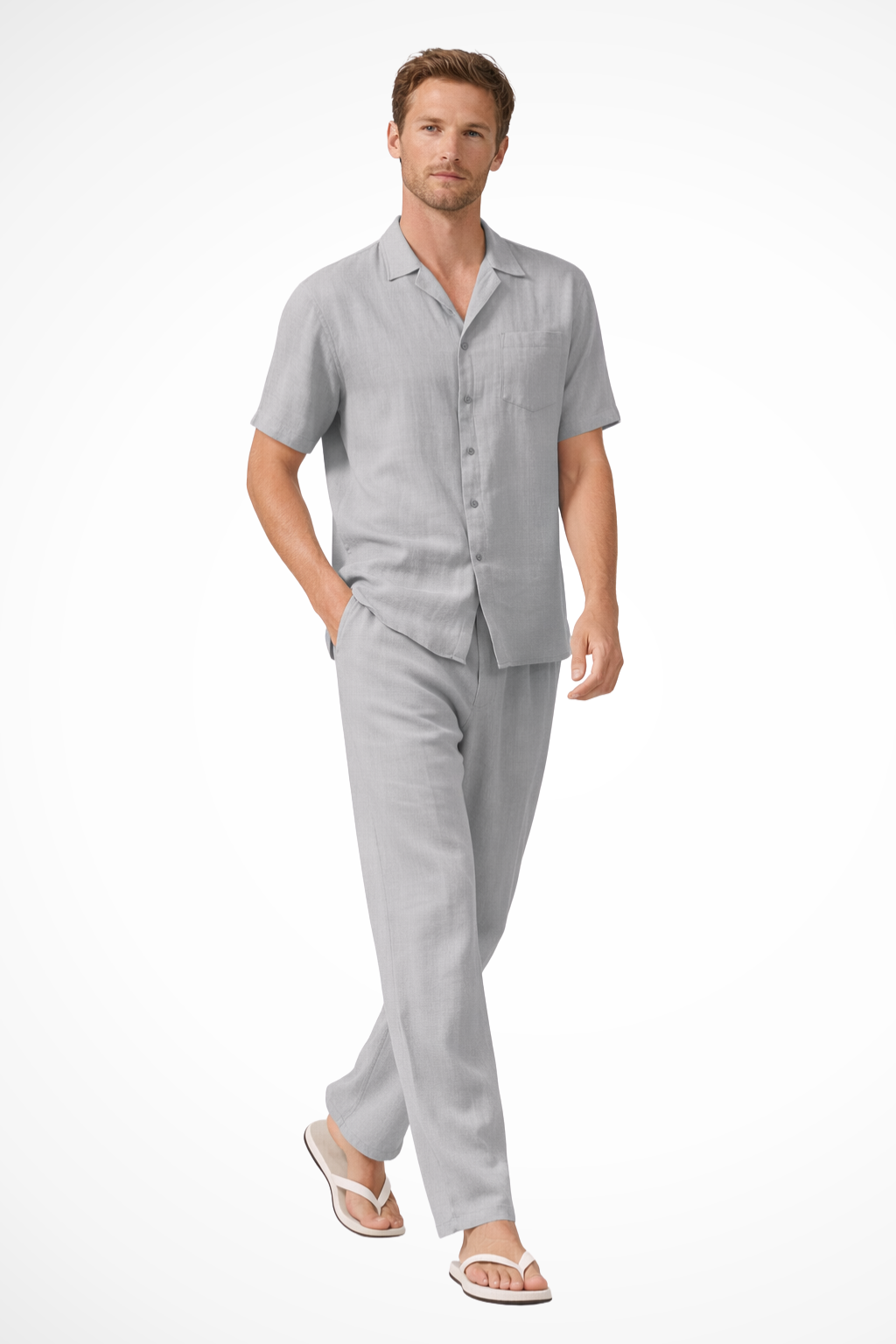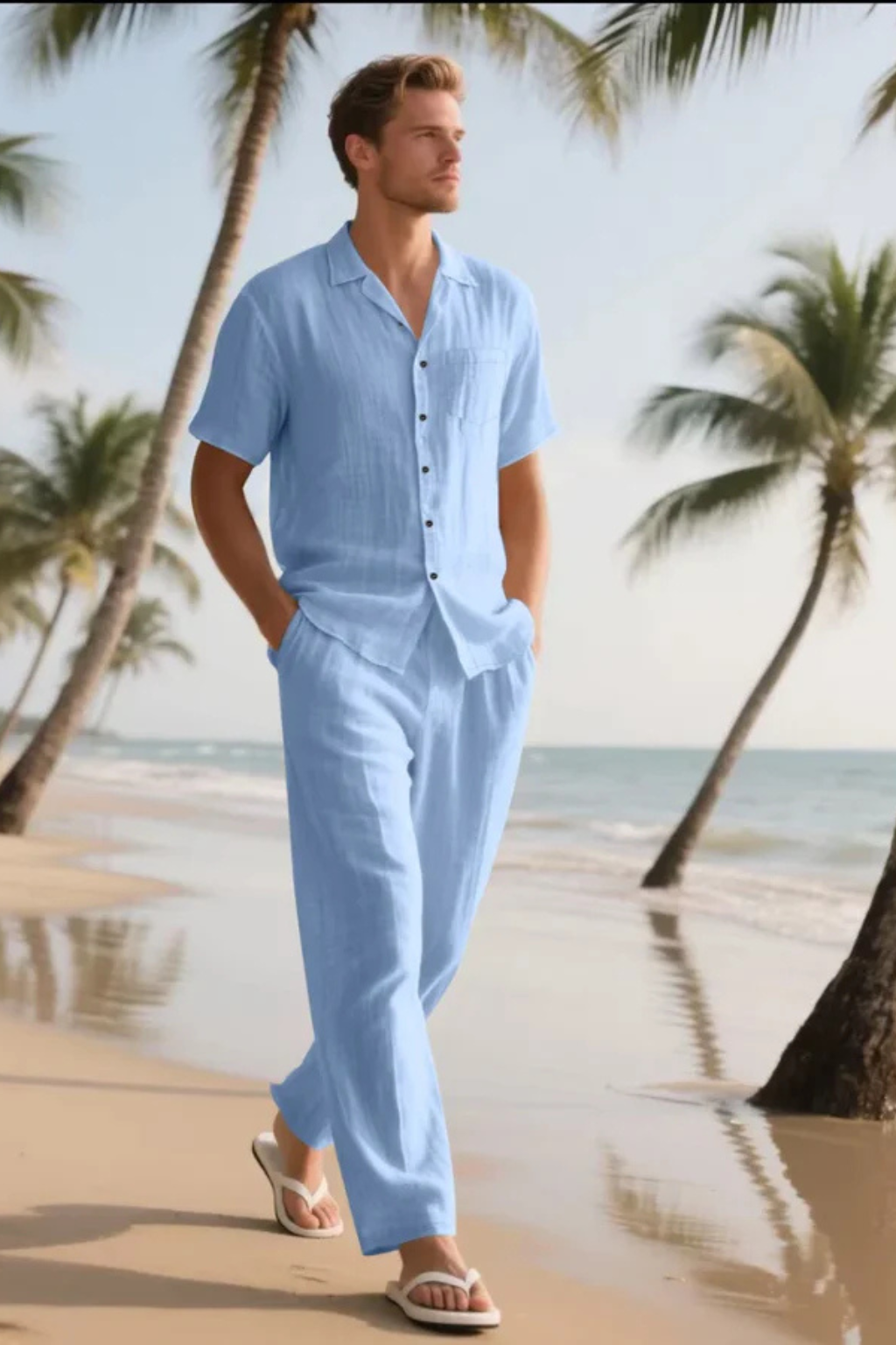 • Coordinated Two-Piece Set: Matching shirt and trousers create a cohesive summer-ready outfit.