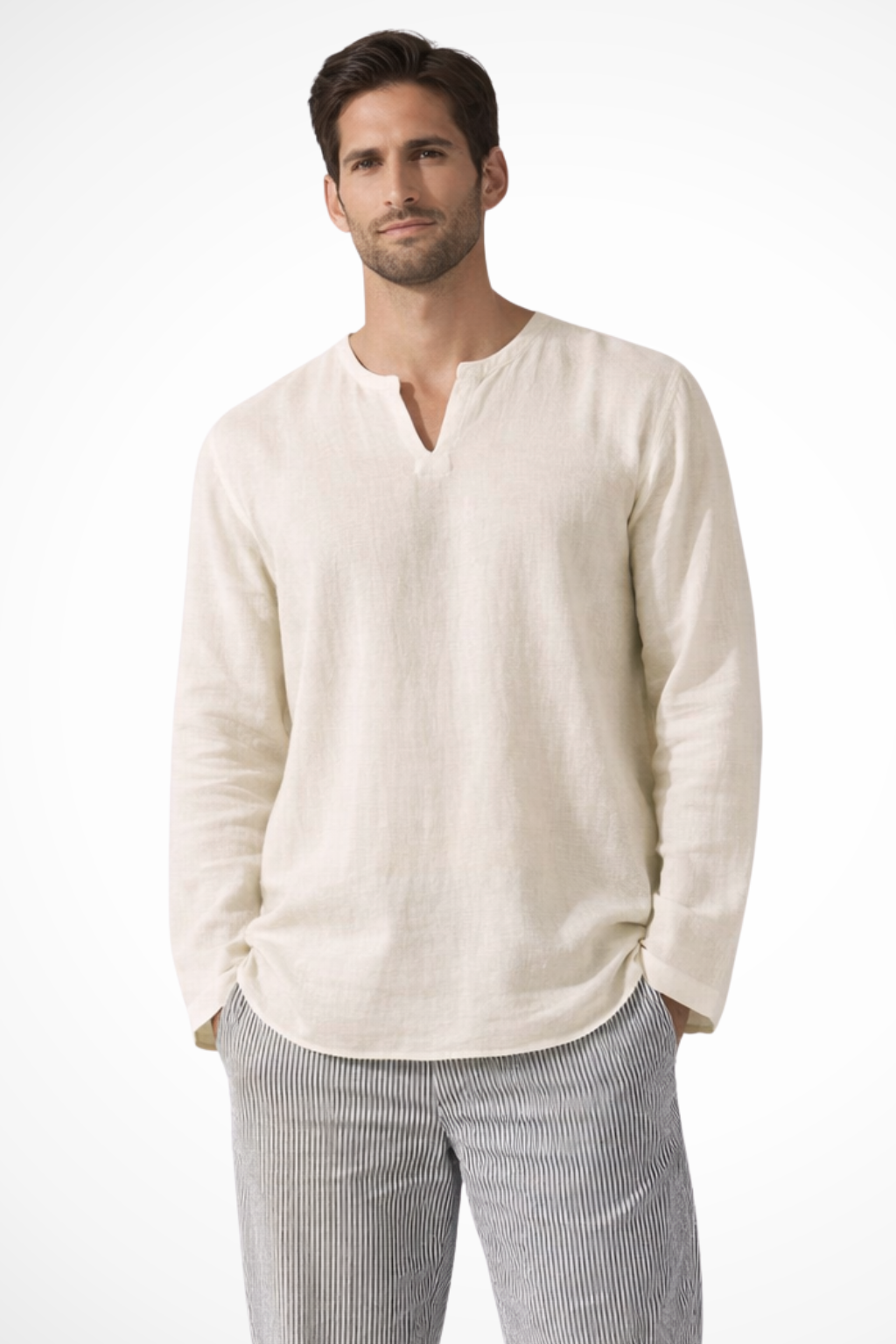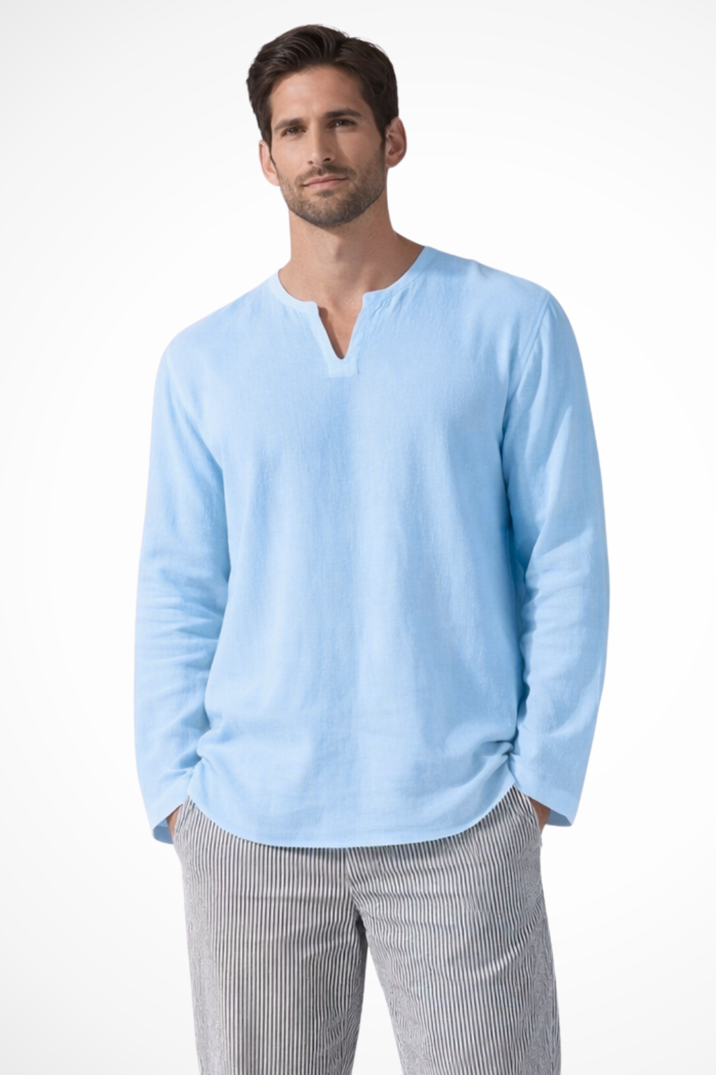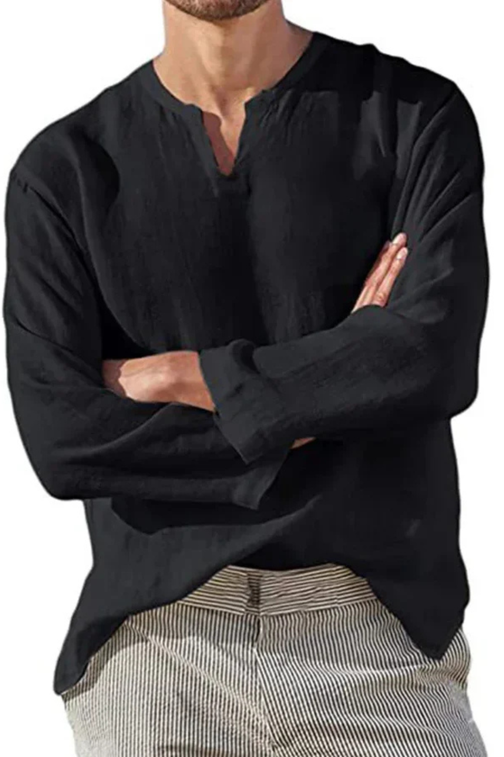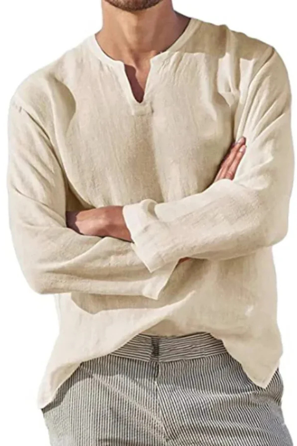 Sebastiano | Men Linen V Neck Long Sleeve Casual Shirt